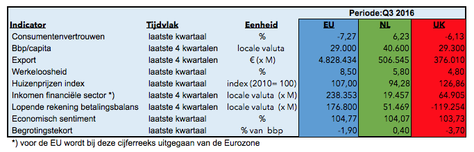 Als we beter in de achteruitkijkspiegel kijken van de door Eurostat verzamelde data tot en met het derde kwartaal van 2016 (2016Q3), dan valt ten aanzien van de door de Britten gewenste Brexit een aantal zaken op: