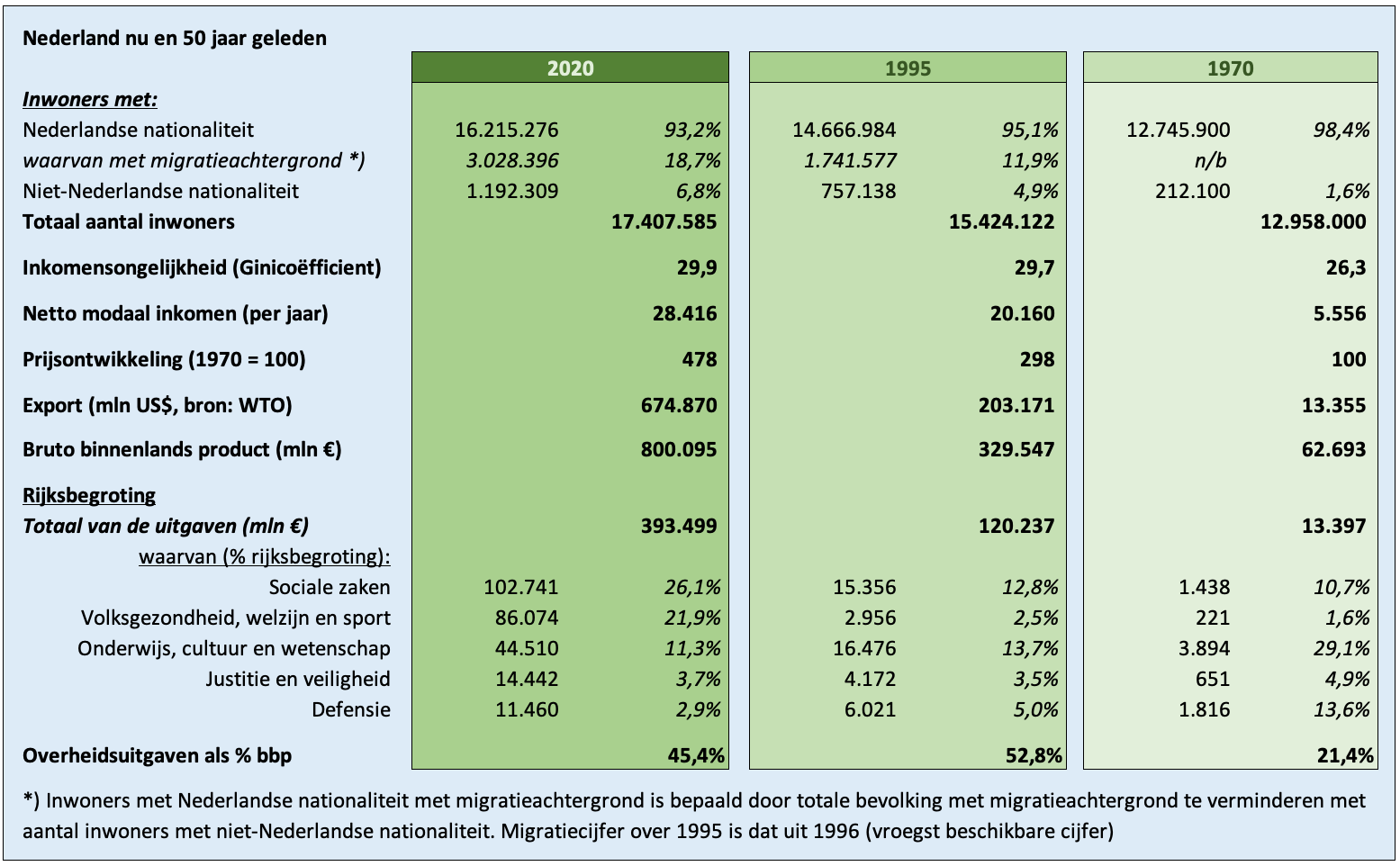 In de afgelopen vijftig jaar is het aantal inwoners van Nederland met meer dan 30% toegenomen. Door migratie is ook de samenstelling van de bevolking wezenlijke veranderd; de 30% groei van het inwoneraantal is voor ca. 45% te herleiden uit migratie. Niet alleen het aantal inwoners is gegroeid, maar ook het aandeel van Nederland in de internationale handel en de grootte van de economie.